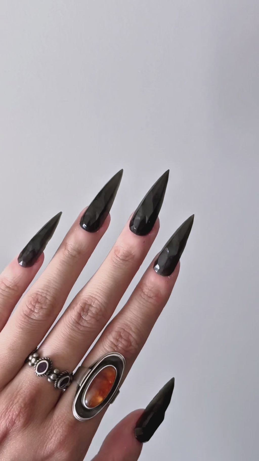 Infused with volcanic strength and shaped through sacred geometry, each black obsidian nail glistens with depth and dimension. Known as the stone of truth and energetic shielding, obsidian grounds you in your power and protects your spirit from negativity, your armour on hands, in gemstone form.